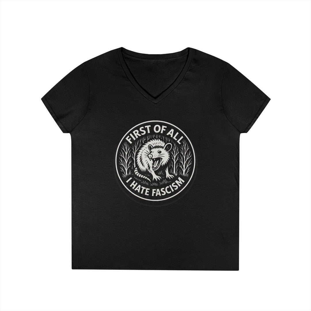 First Of All I Hate Fascism Opposum - Women's V-Neck T-Shirt