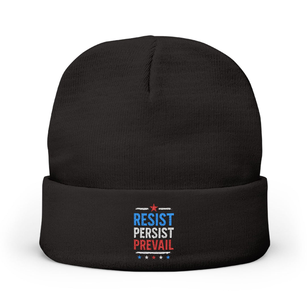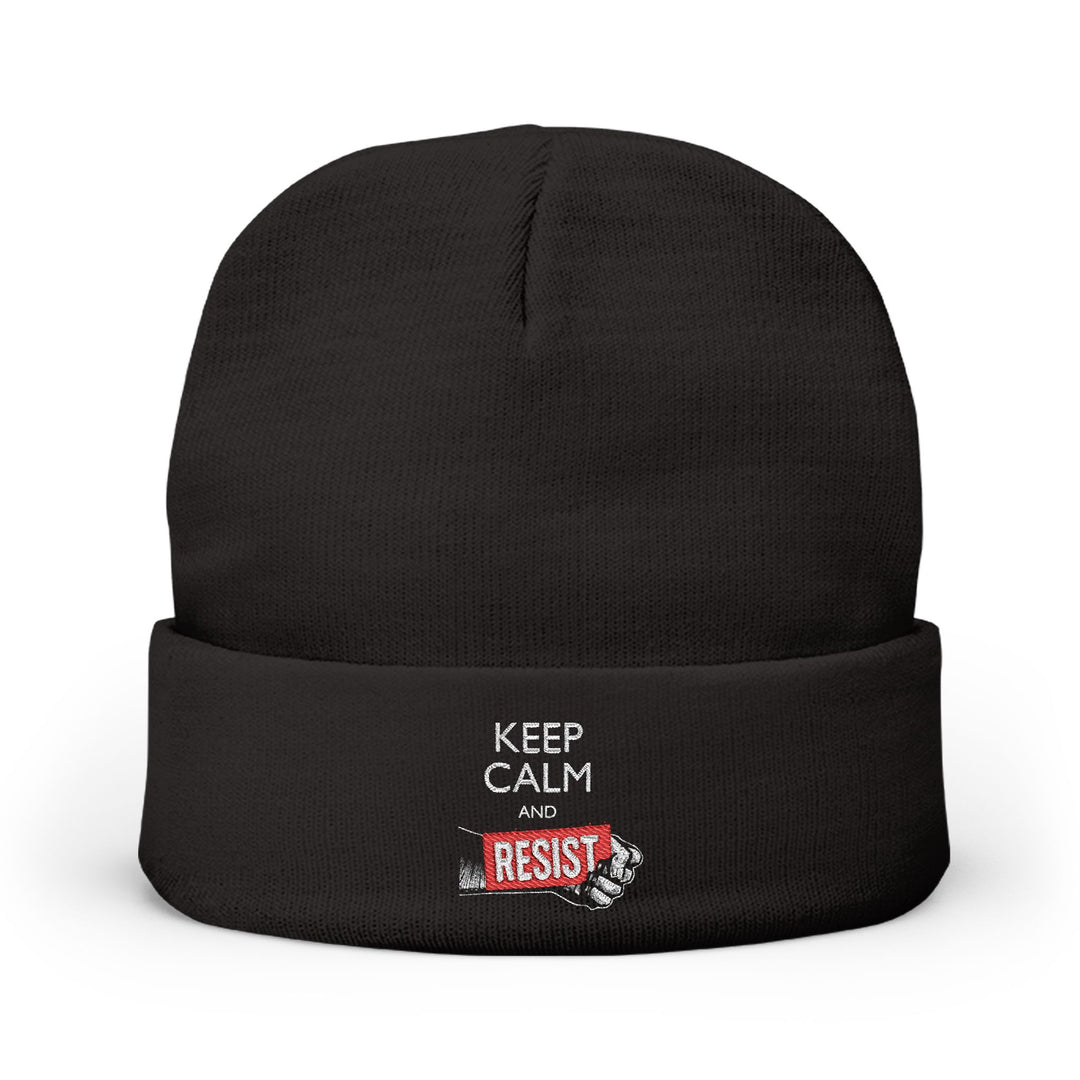 RESIST Circle-T Slash Graphic Against Authoritarianism – Embroidered Knit Beanie