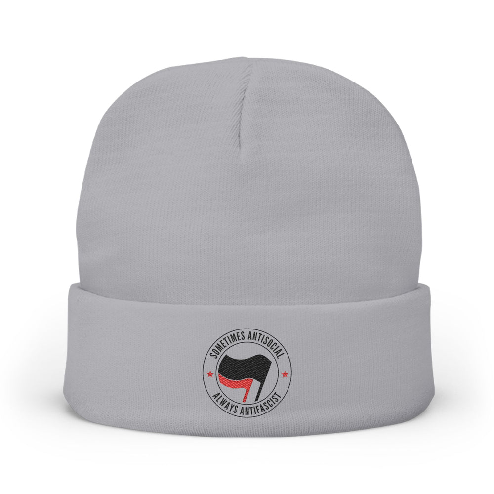 Sometimes Antisocial Always Antifascist – Embroidered Knit Beanie