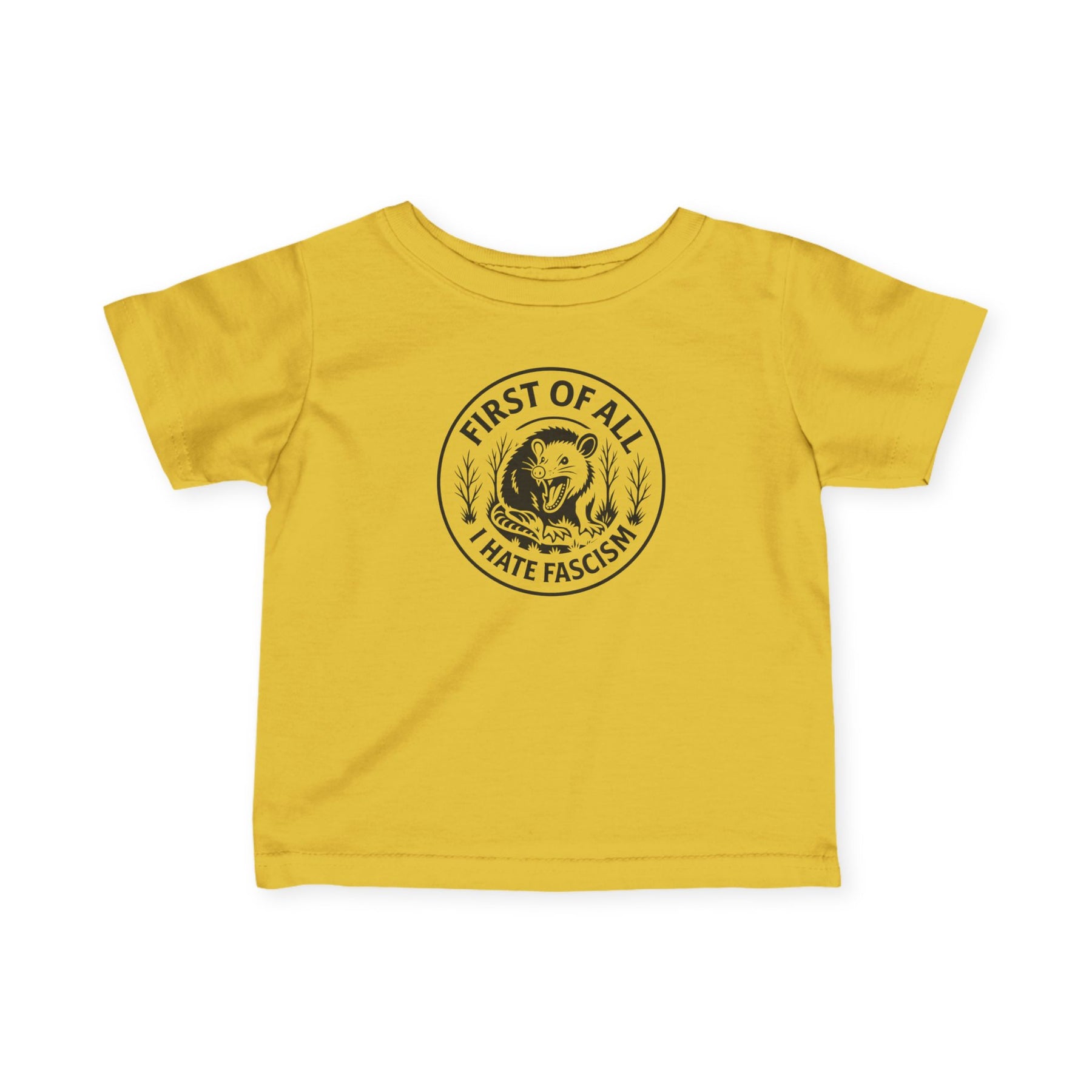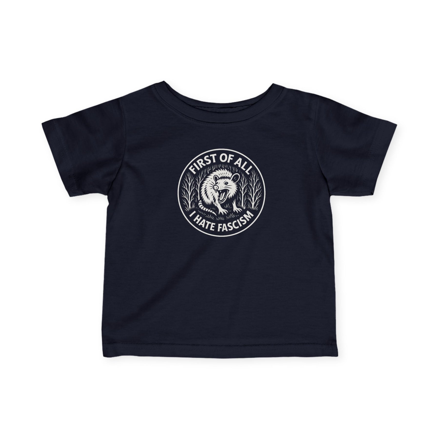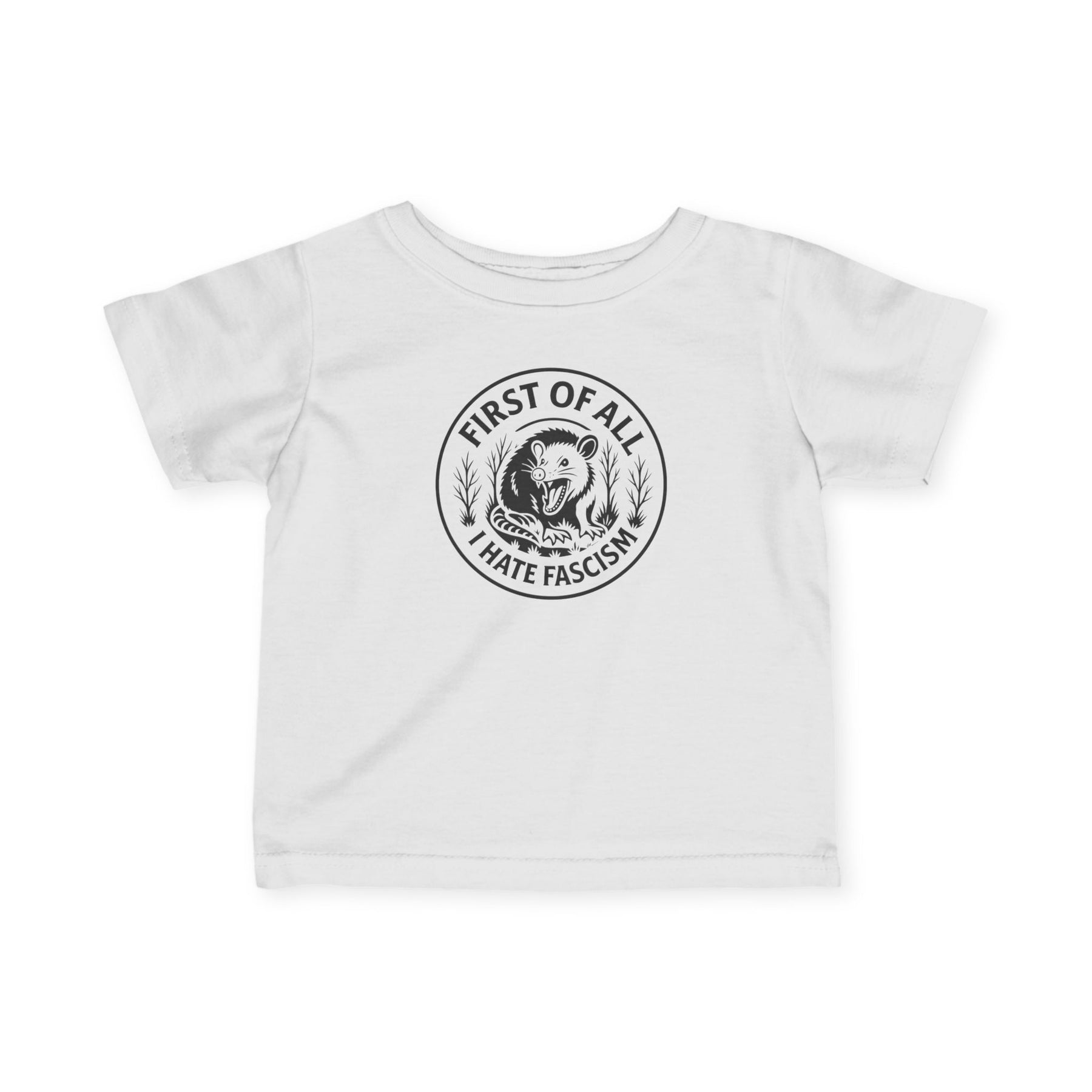 First of All I Hate Fascism Opossum – Infant Fine Jersey T-Shirt