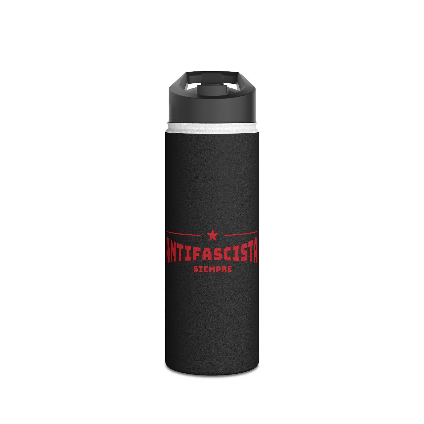 Antifascista Siempre with Red Star (Black) - Stainless Steel Water Bottle - Standard Lid