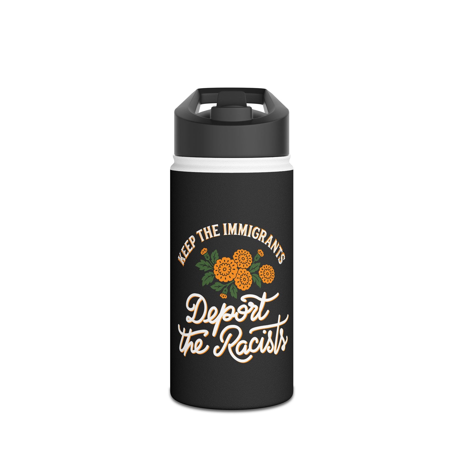 Keep the Immigrants, Deport the Racists with Flower Graphic - Stainless Steel Water Bottle - Standard Lid