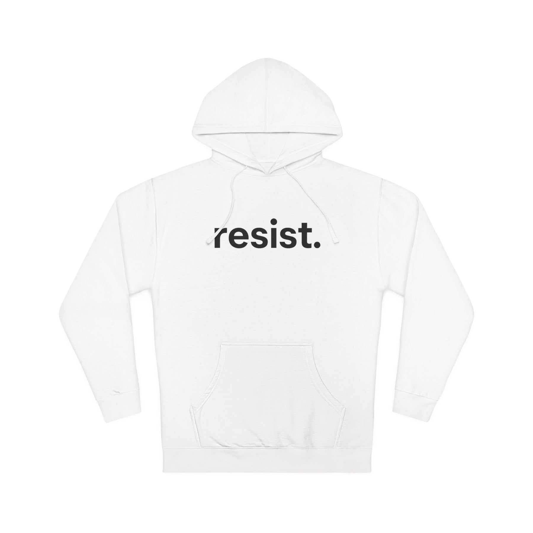 resist. One word, lowercase, final. No emphasis tricks, no softening language—just the directive that matters when authoritarianism becomes policy. This design stays clean because resistance isn’t decorative, it’s practical. Built into a pullover hoodie meant for regular wear, it’s for days when showing up is non-negotiable and comfort is part of staying in the work.