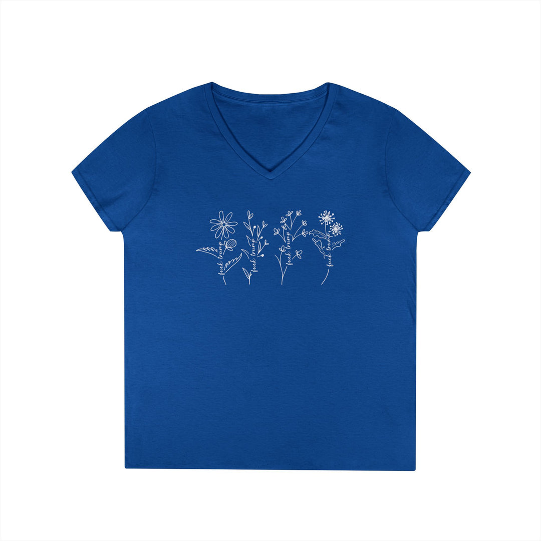 F**k Trump Wildflowers Graphic – Women's V-Neck T-Shirt