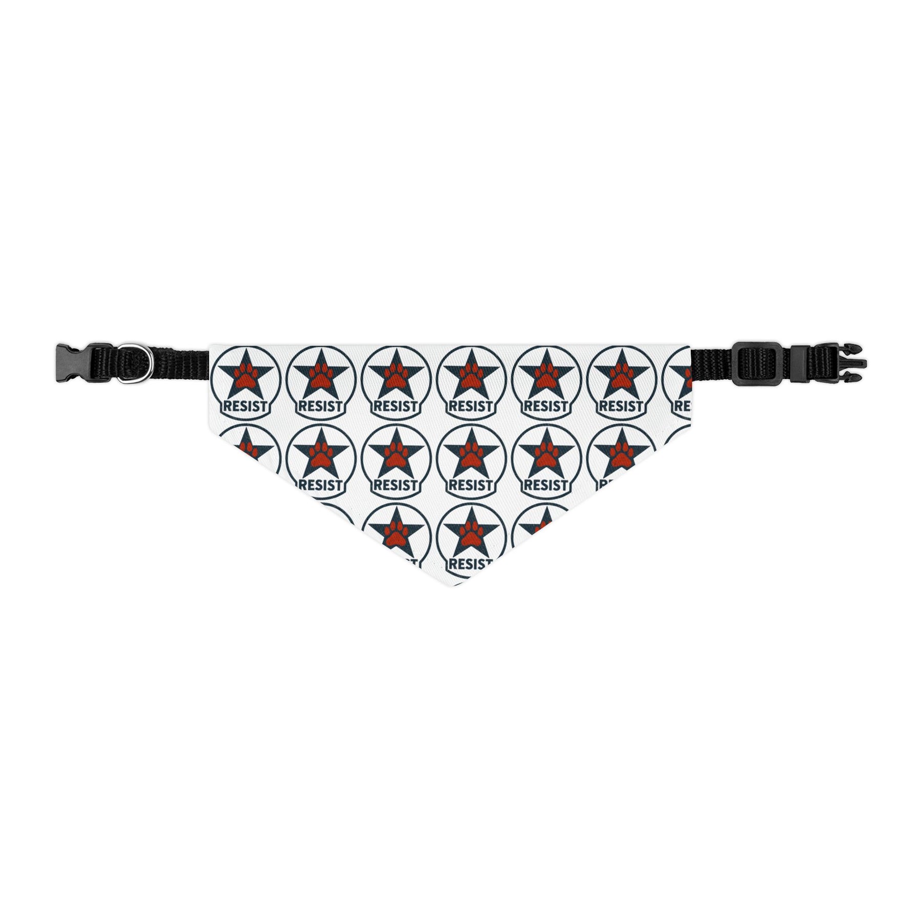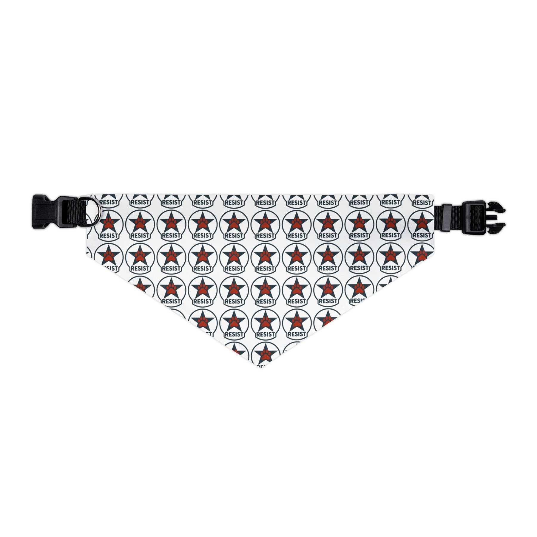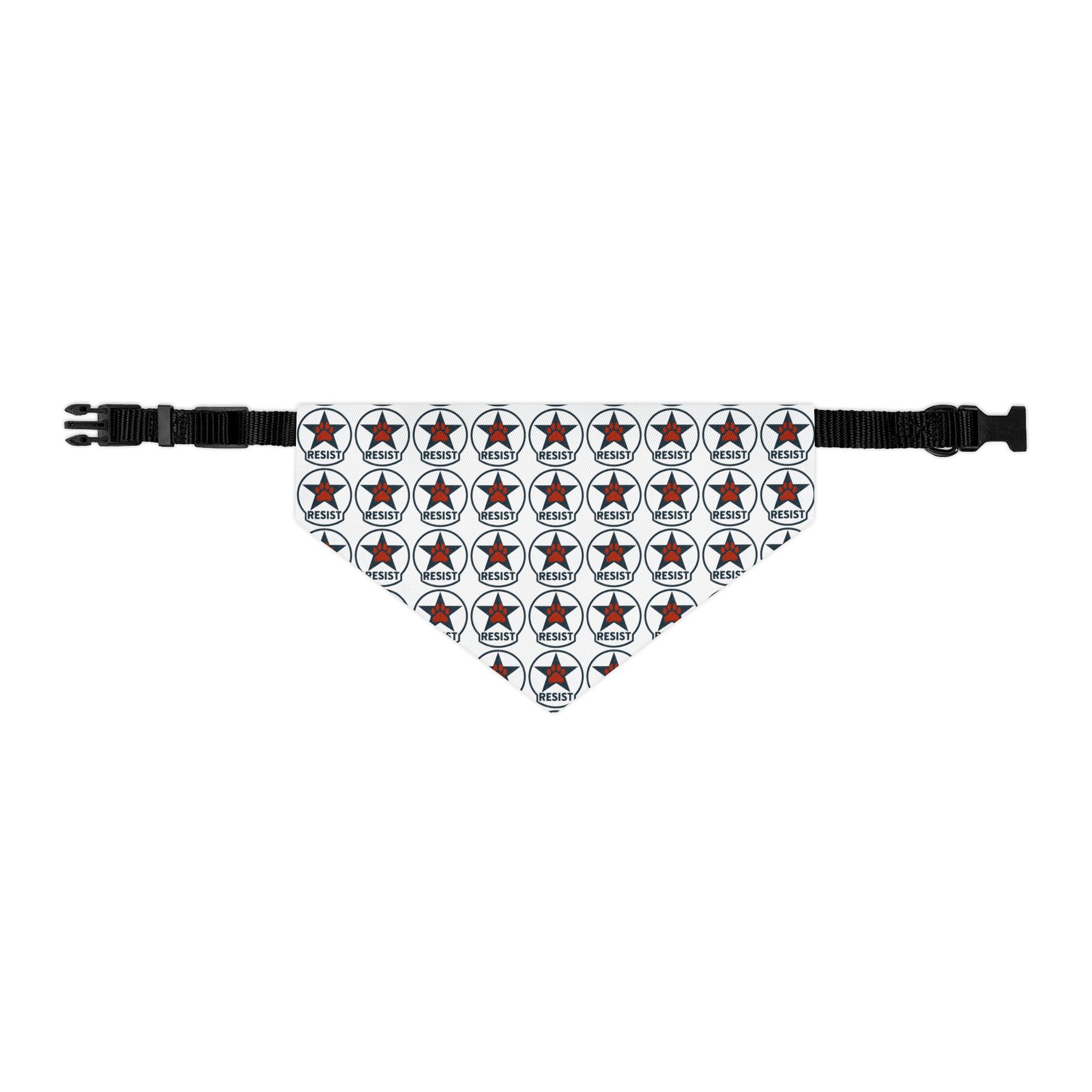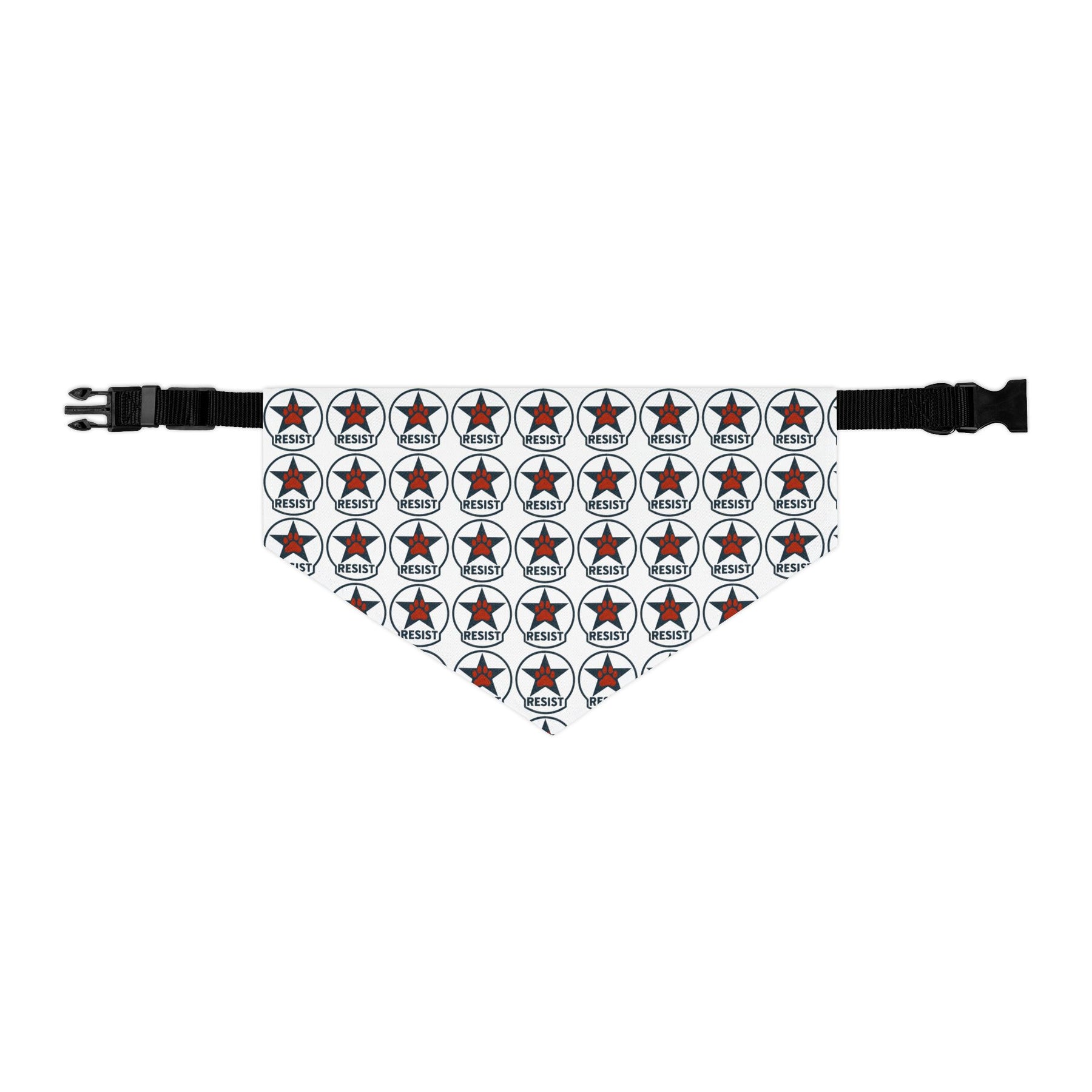 Resist. Clear, repeated, and intentional. This emblem pattern treats resistance as something steady rather than performative, showing up again and again without explanation. The design stays legible and direct, letting the message sit plainly while the construction does the work. Finished as a clip-on dog bandana with an adjustable collar, it’s built to stay put, move comfortably, and handle everyday indoor and outdoor wear.