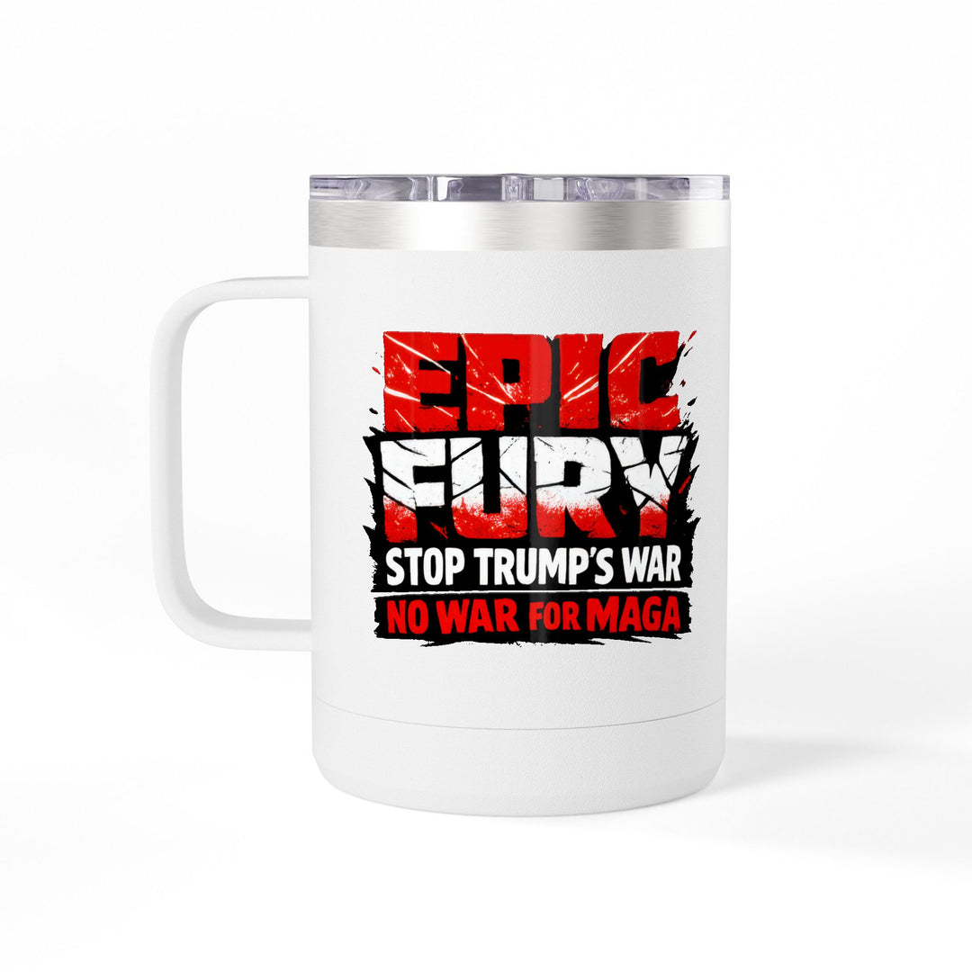 EPIC FURY Stop Trump’s War No War for MAGA - 15oz Stainless Steel Travel Mug
