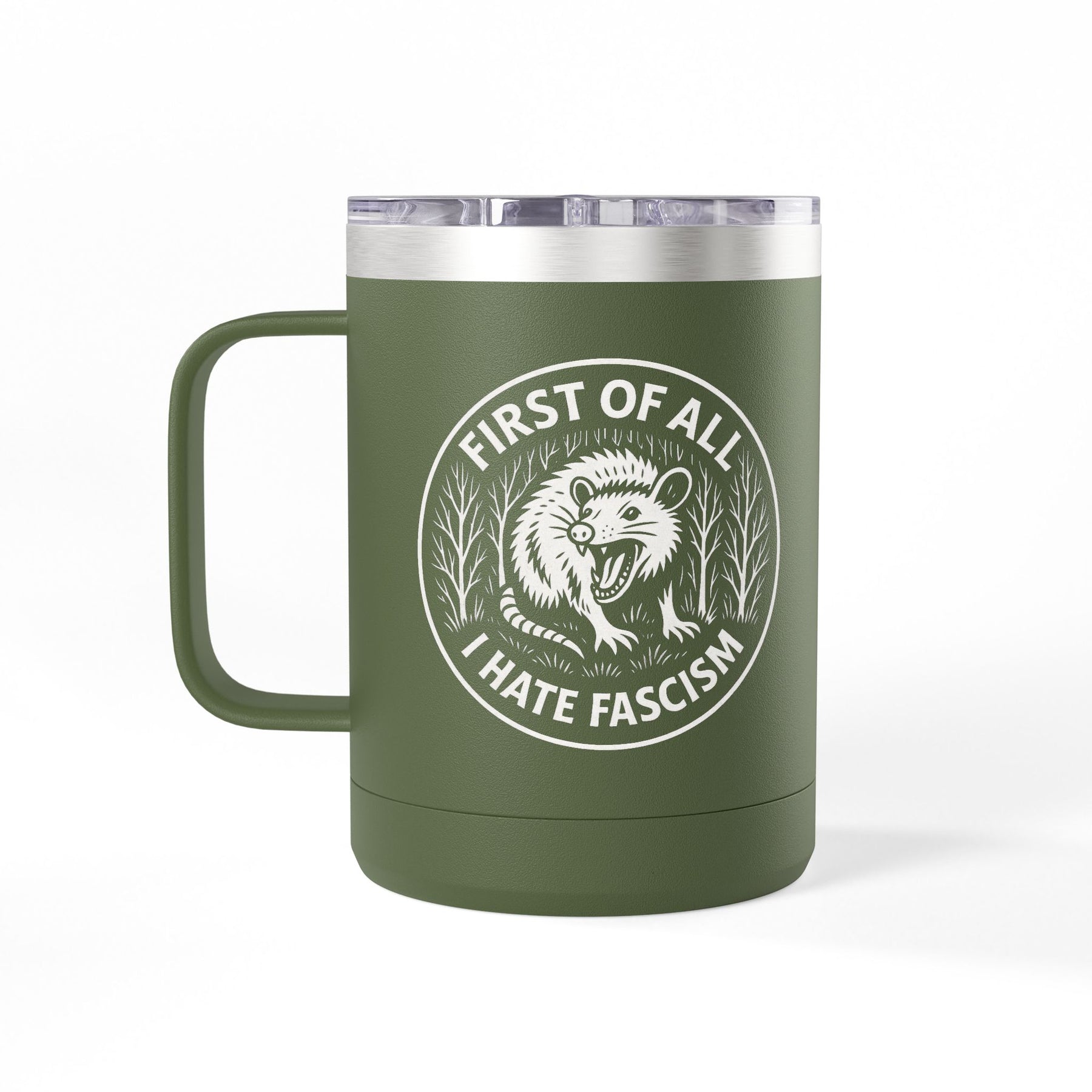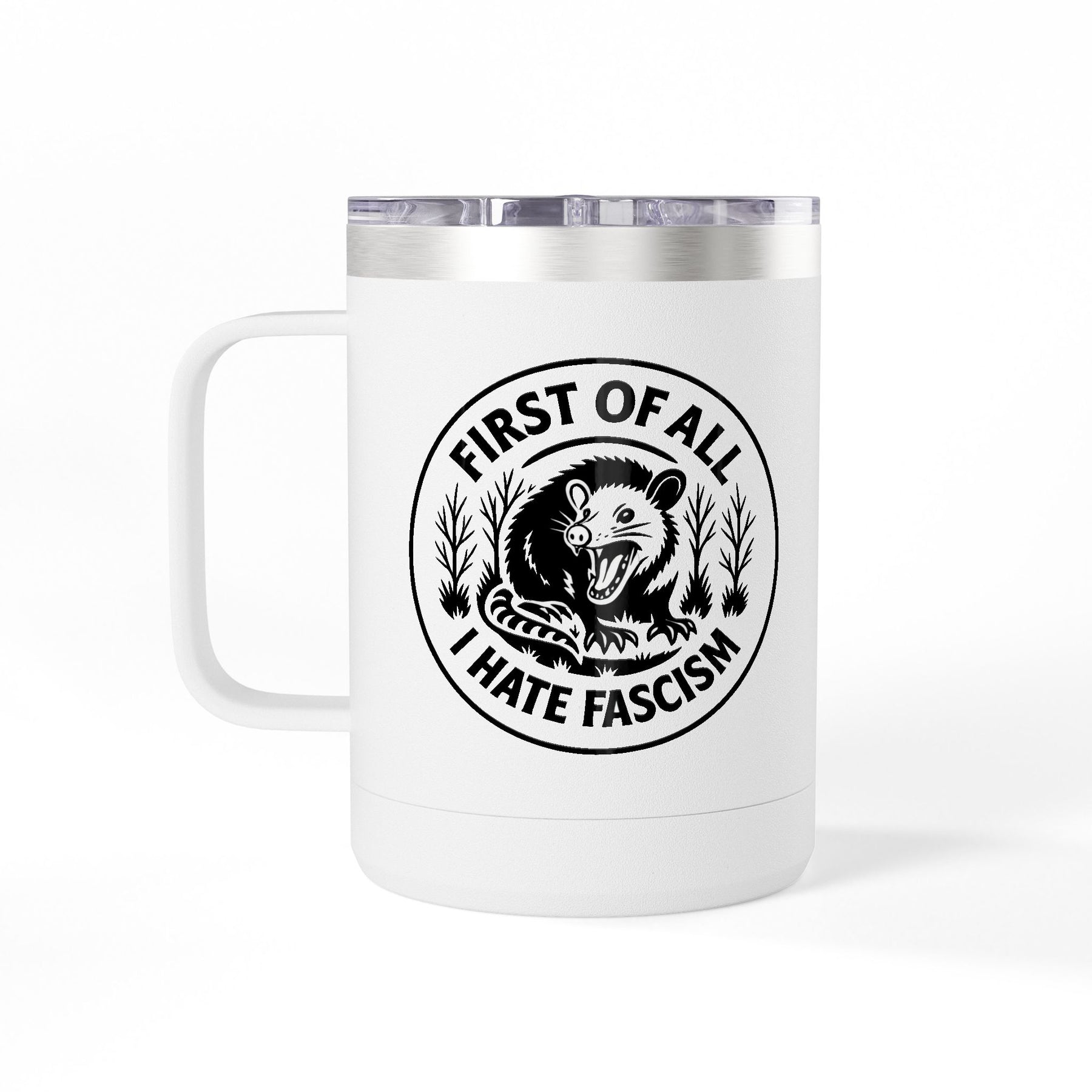 First of All I Hate Fascism Opossum - Coffee Mug Tumbler, 15oz