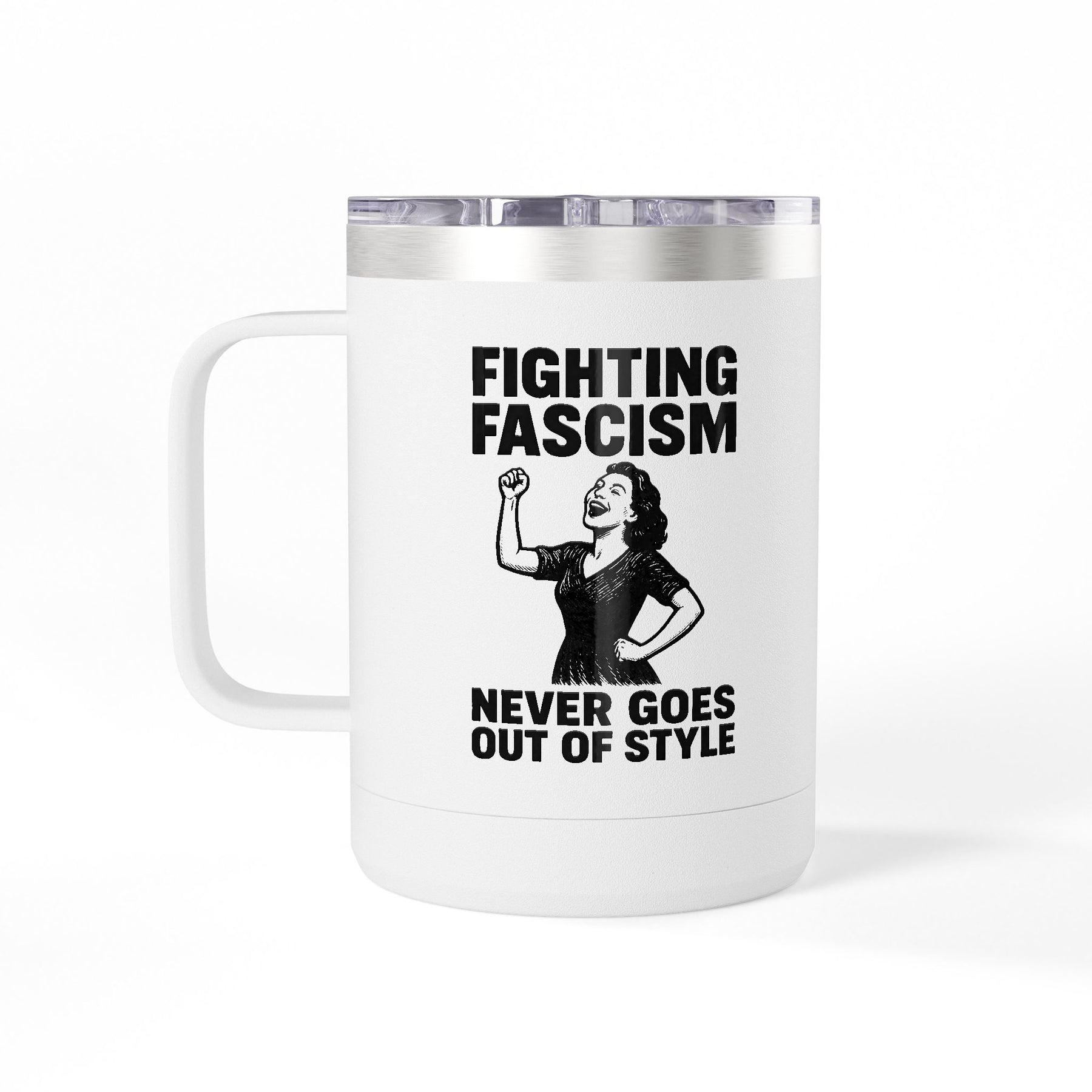 Fighting Fascism Never Goes Out of Style – Stainless Steel Travel Mug 15oz