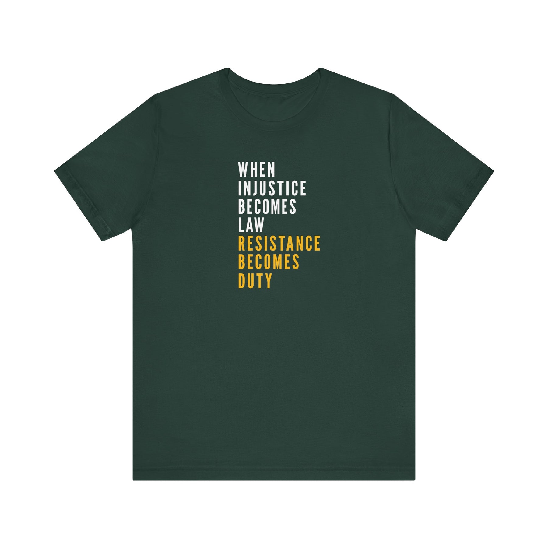 ✔️ Gold / White-Print Design – "When Injustice Becomes Law, Resistance Becomes Duty" refined statement