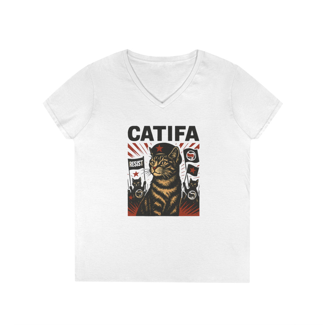 Catifa - Anti-Fascist Cat – Women's V-Neck T-Shirt