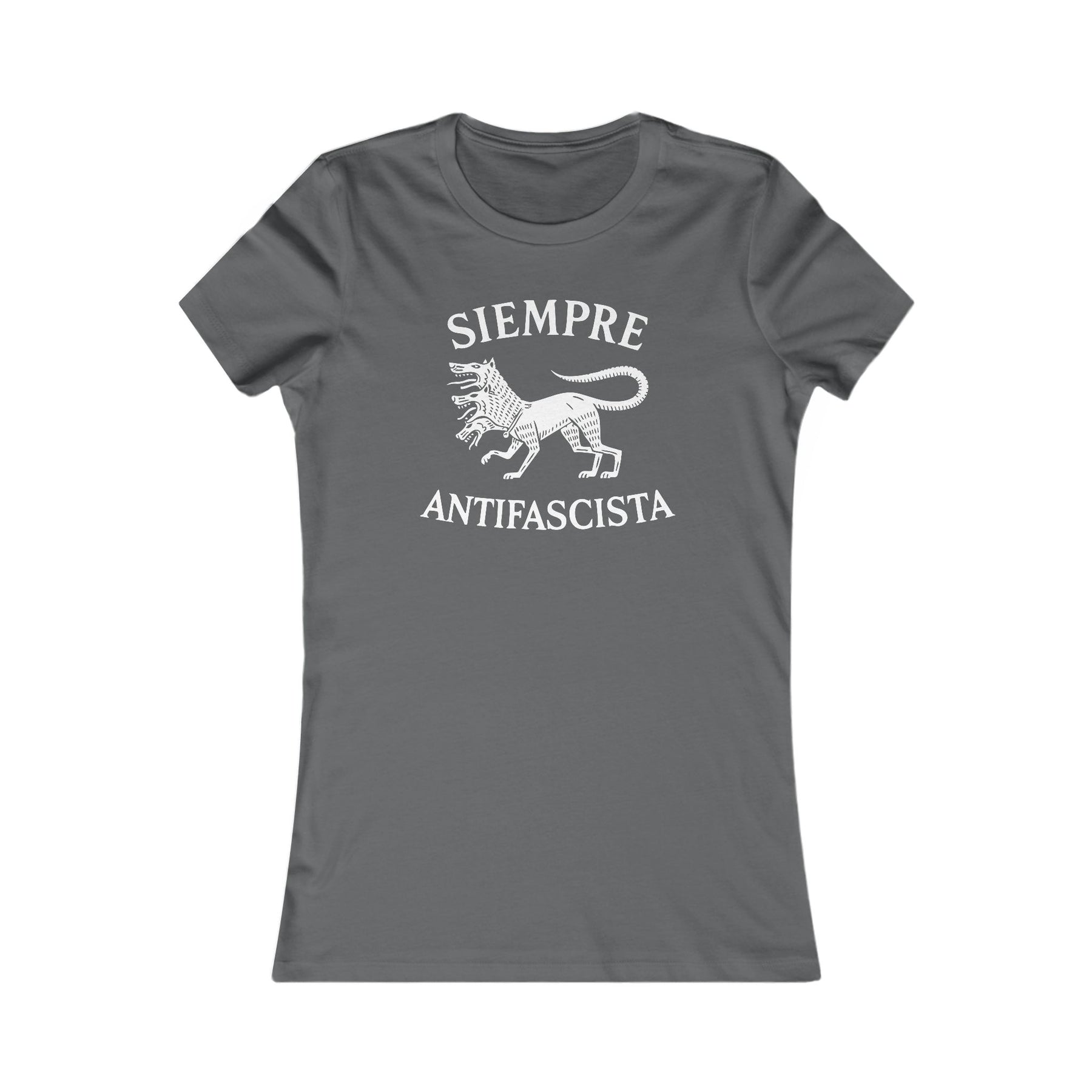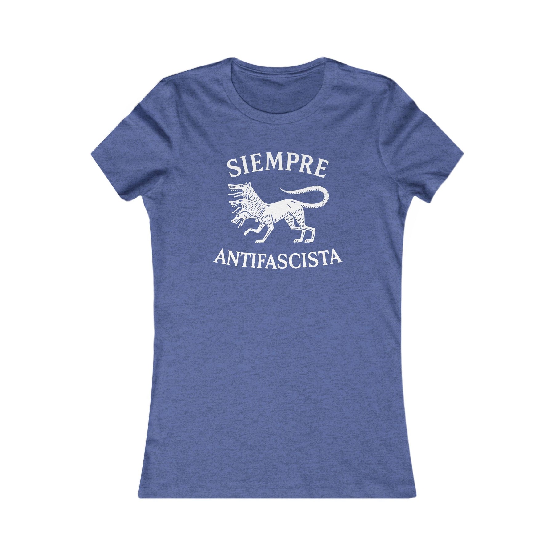 Siempre Antifascista. Always anti-fascist. The three-headed Cerberus (dog) guards the gates, vigilant from every angle—a reminder that resistance never sleeps. Yesterday, today, tomorrow, we stay alert against fascism in all its forms. This design pairs Spanish resistance language with Greek mythology for a powerful declaration that crosses borders and generations. Made to feel like a well-loved favorite with Bella+Canvas's soft airlume cotton and a slim fit that's as stylish as it is comfortable.