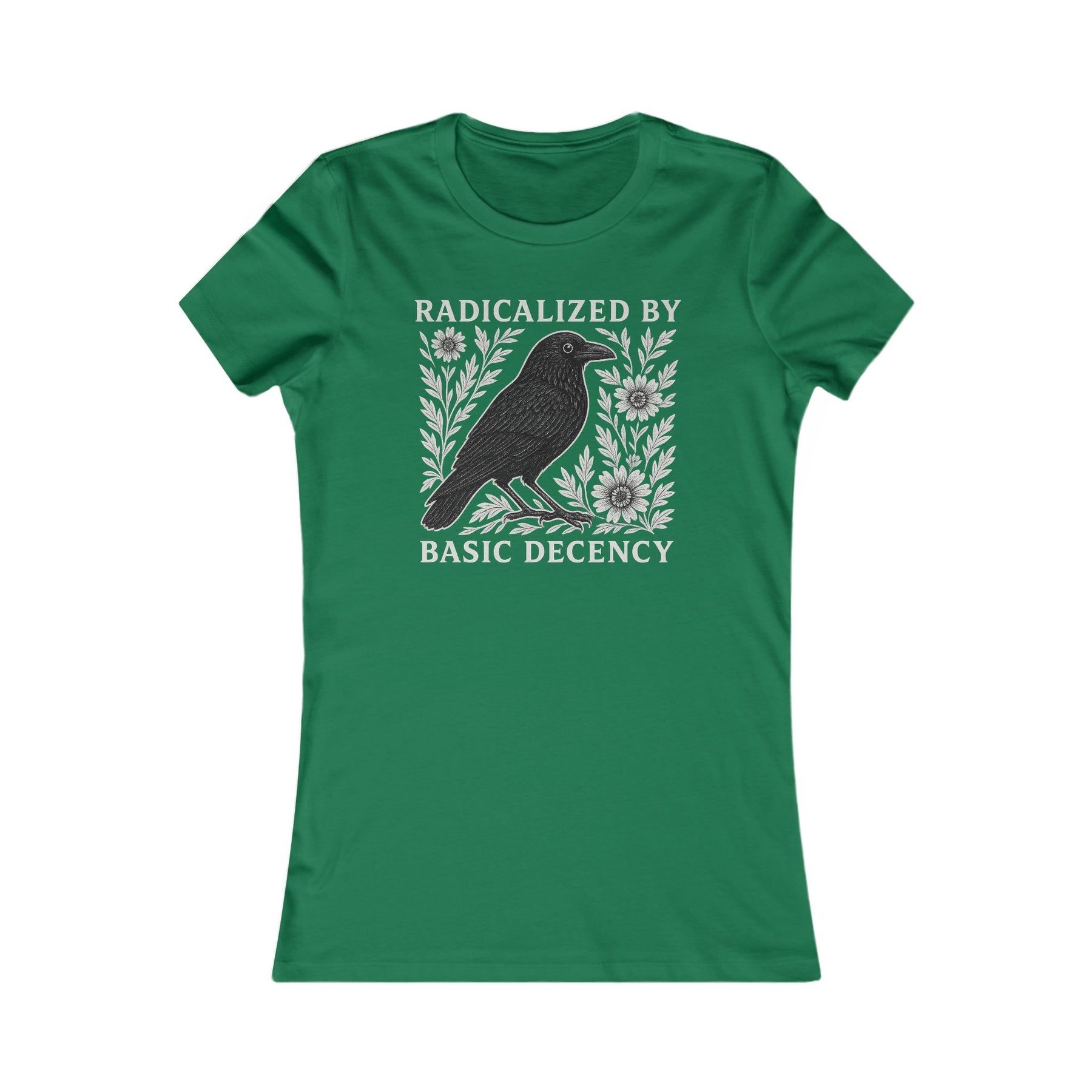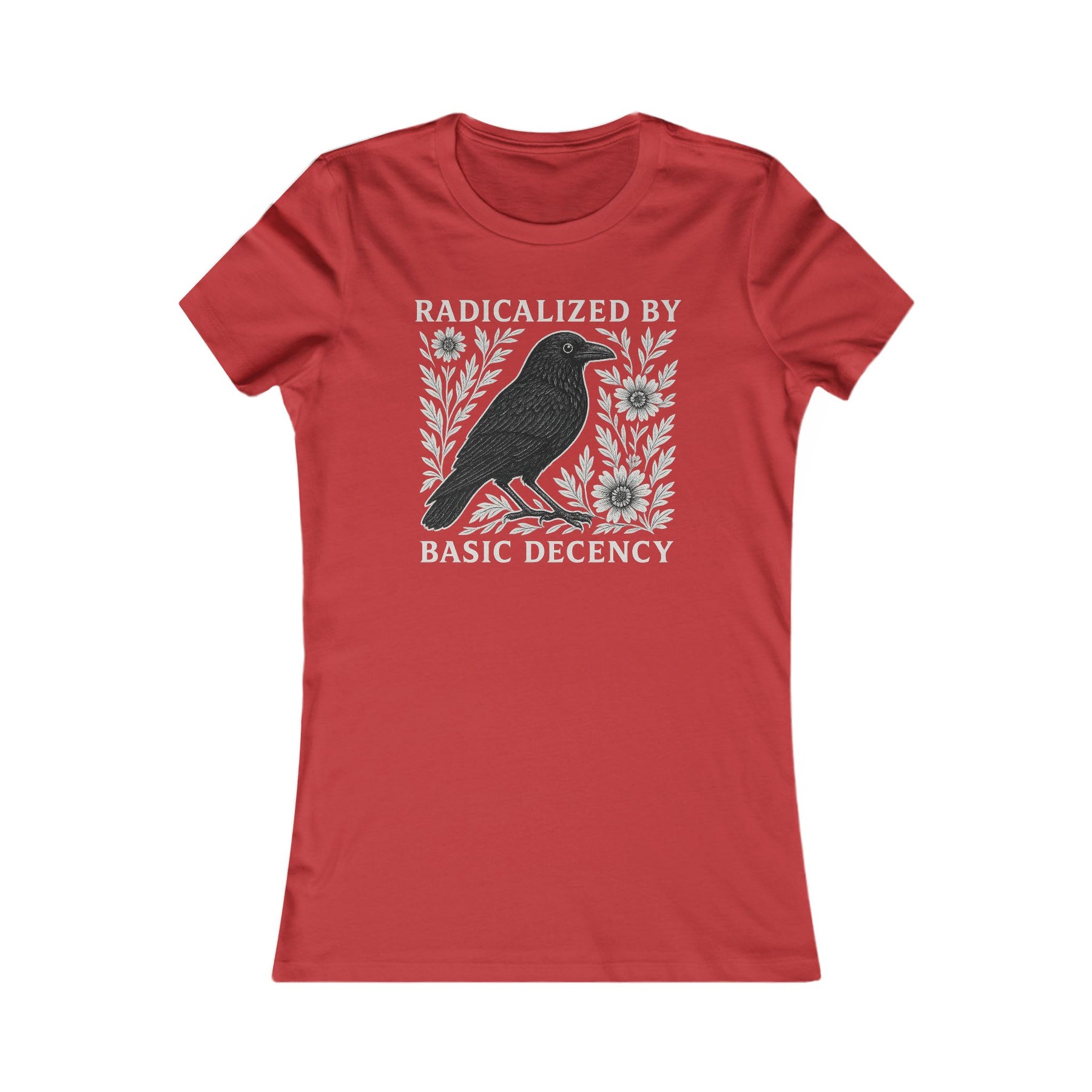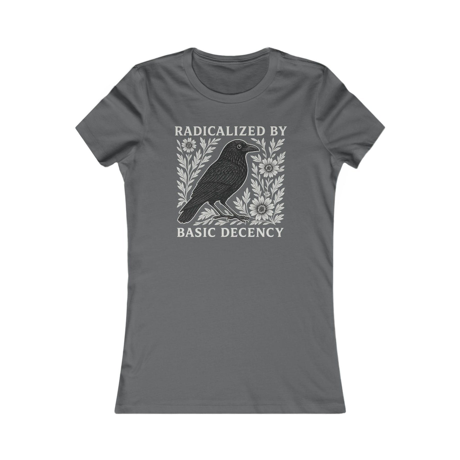 Radicalized by Basic Decency Crow Graphic – Women's Fitted T-Shirt