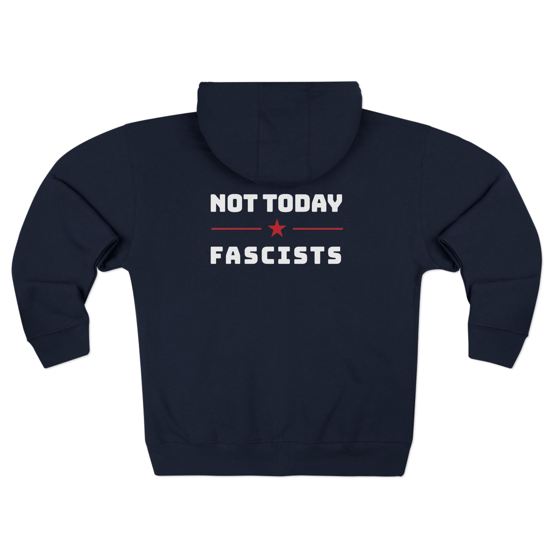 Not today, fascists. A bold declaration of refusal with a defiant red star—the symbol of solidarity and resistance across generations. Stay warm while standing your ground with this powerful statement zip hoodie that tells authoritarianism exactly where it can go. Perfect for cold-weather rallies, protests, or everyday resistance when tyranny tries to rise and you're simply not having it.